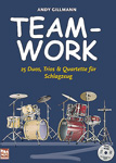 Andy Gillmanns Schlagzeugbuch mit dem Titel „Teamwork“ ist für den Gruppenunterricht konzipiert, Motto: Lernen mit Action und Spaß.